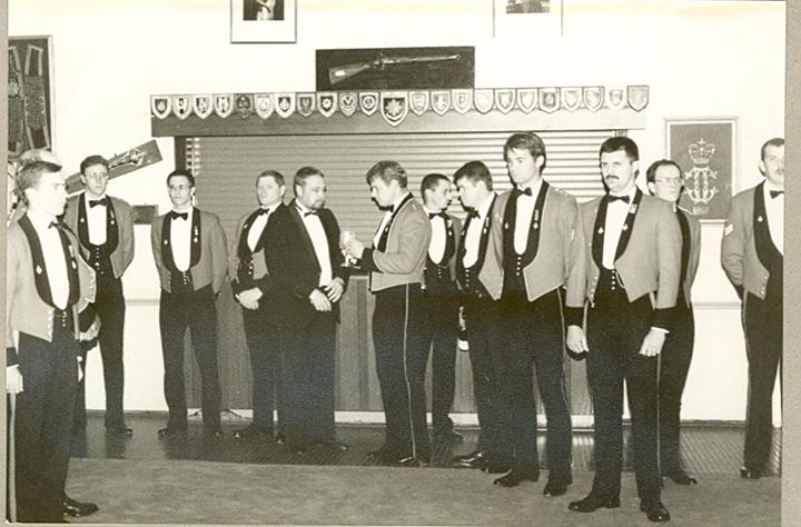 The Colour remained in the possession of the Warrant Officers’ and Sergeants’ Mess until midnight, when the Orderly Officer, or a junior officer, had the honour of visiting their Mess to receive it. Thanks to their legendary hospitality, this generally took some time